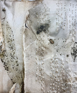 Gabrielle Mordy, Stitched Paper Icon Scroll 4 (detail), 2017. Plant dyed arches paper, and thread,10 x 18cm.